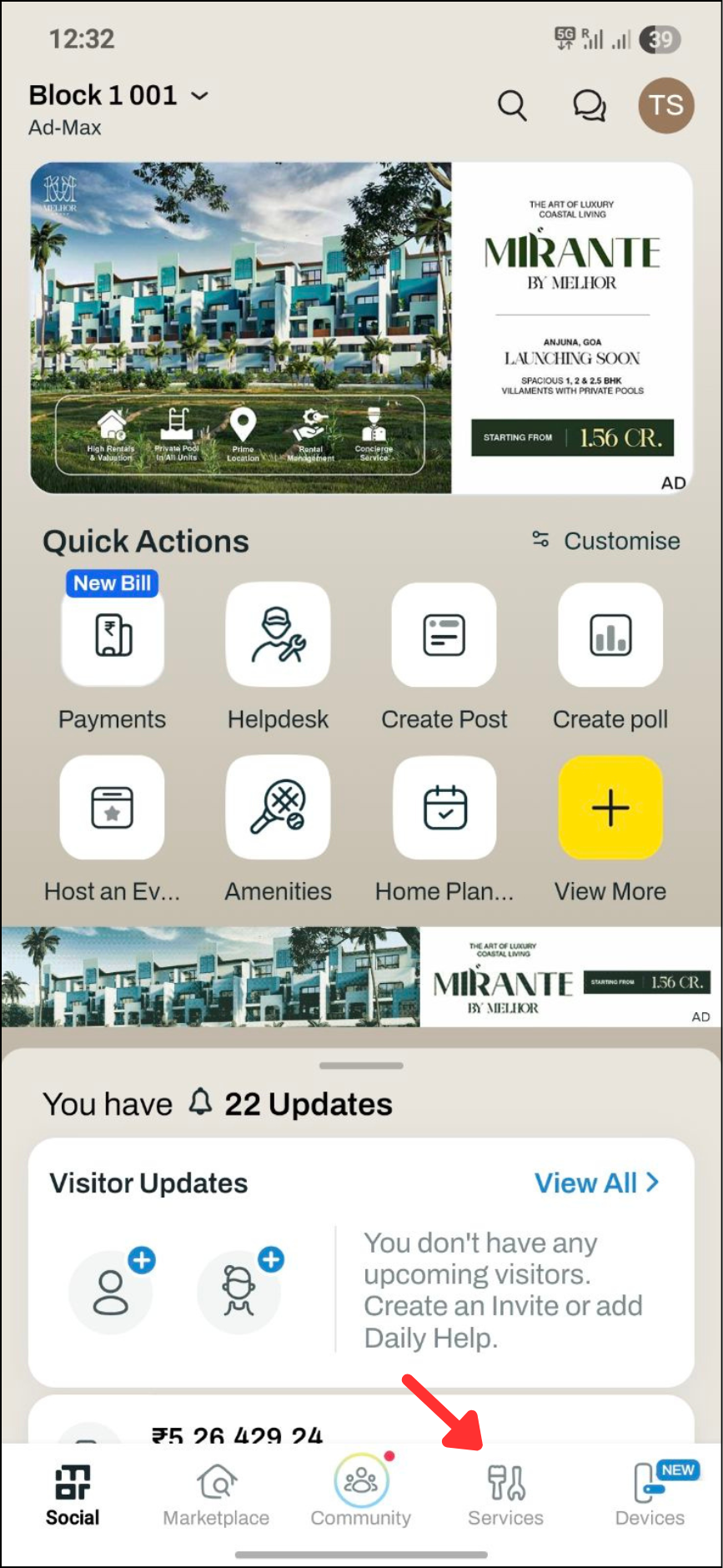 1. Open the mygate app, then click on Services.