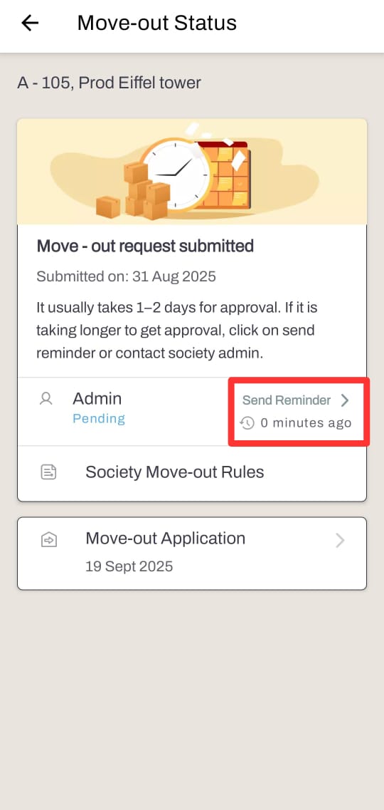 What to do if society admin is not approving my move-out request?
