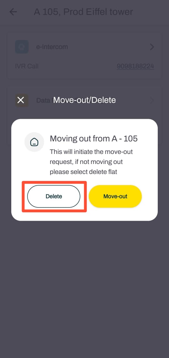 Last resort option - If the society admin remains unresponsive after multiple attempts and reminders, you can delete the move-out request and then delete your flat profile from the system