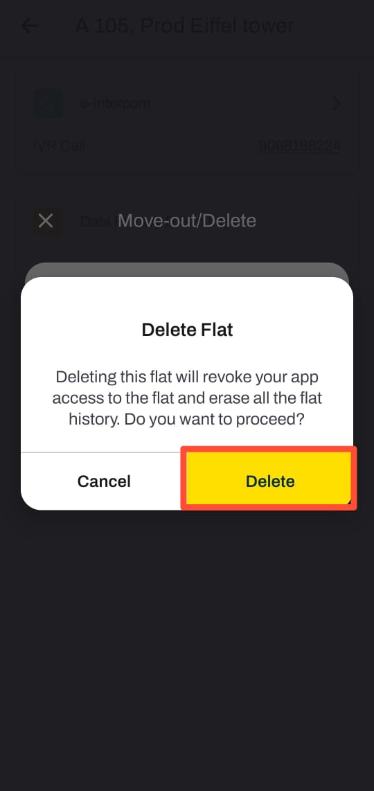 Important: Use the deletion option with caution and only as a final measure, as removing your flat profile may affect other users connected to your unit, such as your property owner if you are a tenant.