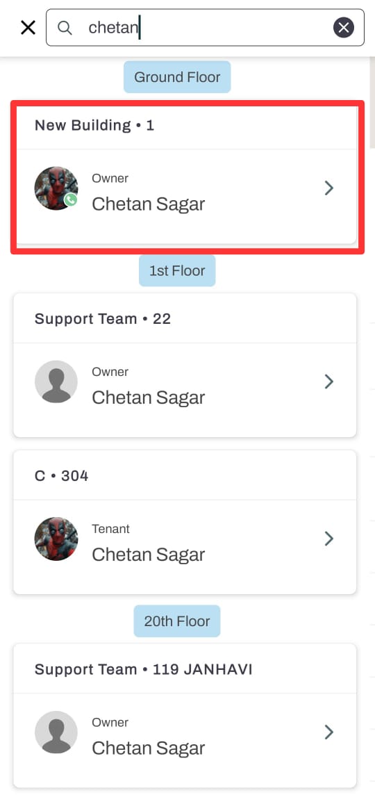 Search for contact details - Go back to the main Resident Directory page and use the search function to look up that person by their exact name