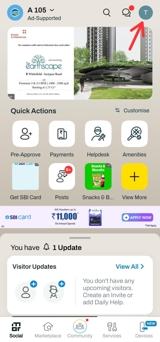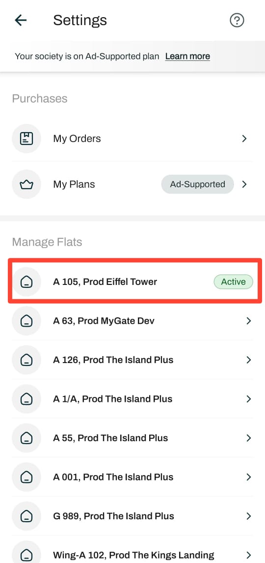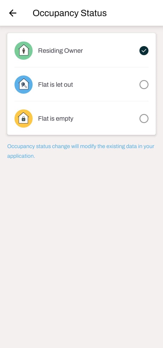 If you are registered as a tenant or as an owner’s family, you will not see or be able to modify this option — in such cases, please contact the flat owner or your society admin for any changes.