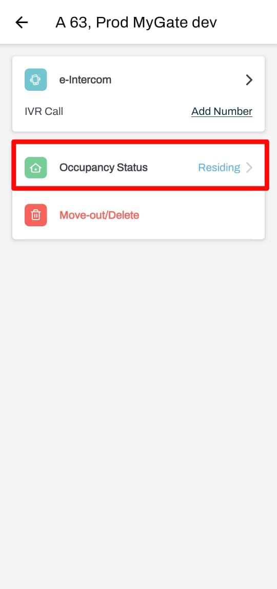 Note: Only owners of a flat in MyGate can view and update the occupancy status.